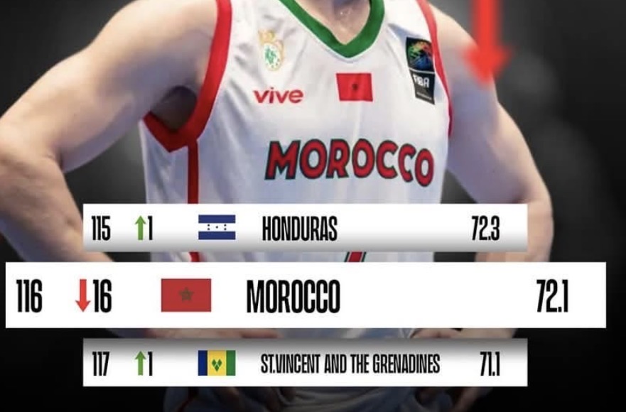 يبرز لنا المنتخب المغربي لكرة السلة الذي بدوره قام بهبوط تاريخي في تصنيف العالمي الصادر عن الإتحاد الدولي لكرة السلة “فيبا”، حيث تراجع المنتخب المغربي إلى المرتبة 116 عالميا بجانب دول مجهرية على غرار سانت فانسنت وغرونادين (أكيد لن تعرفها) ليعكس لنا “أسود” الأطلس للسلة التخبط الكبير الذي تعيشه جامعة كرة السلة منذ سنوات طويلة.
