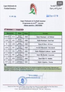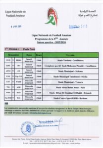 كشفت العصبة الوطنية هواة عن برنامج مباريات البطولة لهذا الأسبوع، الجولة السابعة والثامنة من بطولة القسم الوطني هواة، والجولة الثامنة من بطولة القسم الأول والثاني هواة، وستجرى مباريات هذه الجولة أيام السبت والأحد 08 و 09